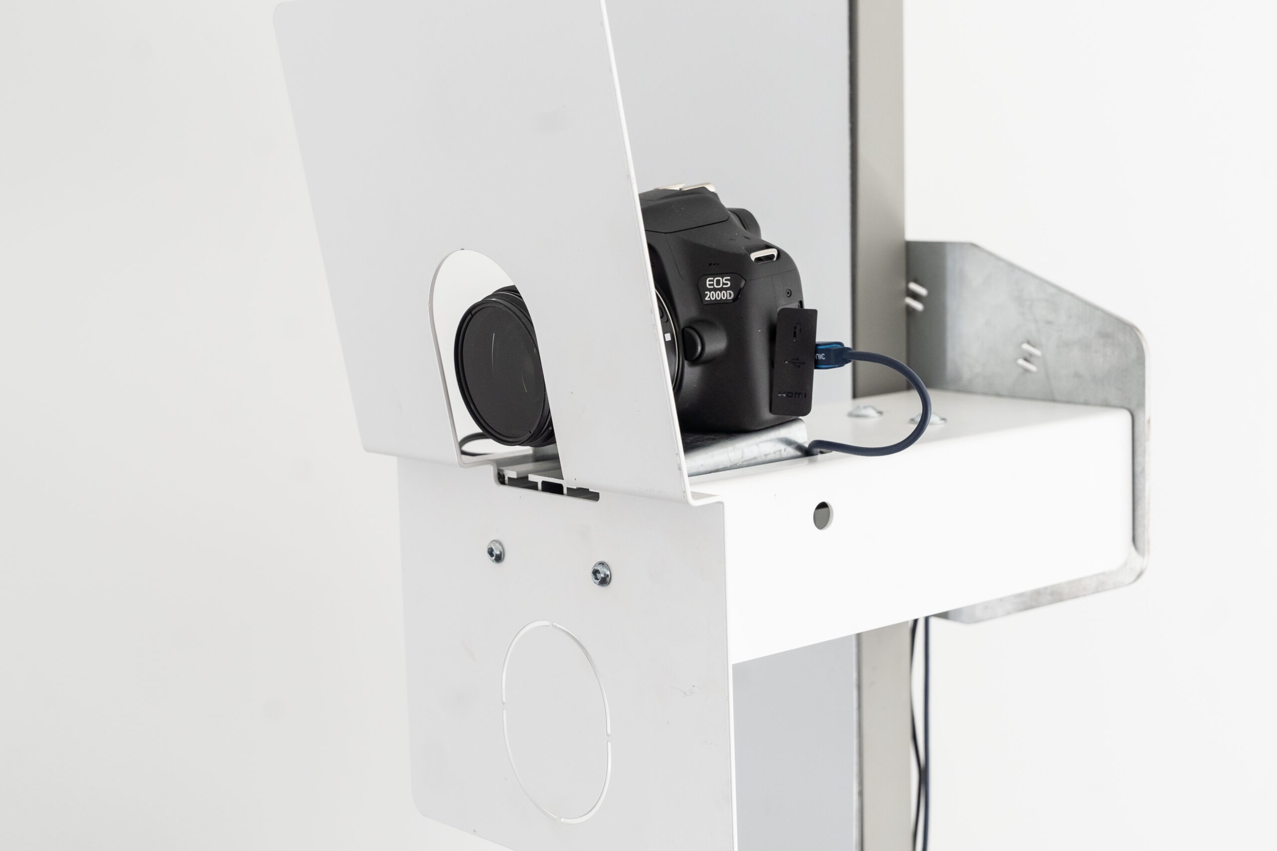 With the positioning control, you can take photos automatically with flexibly adjustable rotation programmes using a touch screen on a column. Almost any camera can be connected to the supplied cable, allowing the photos to be taken automatically.