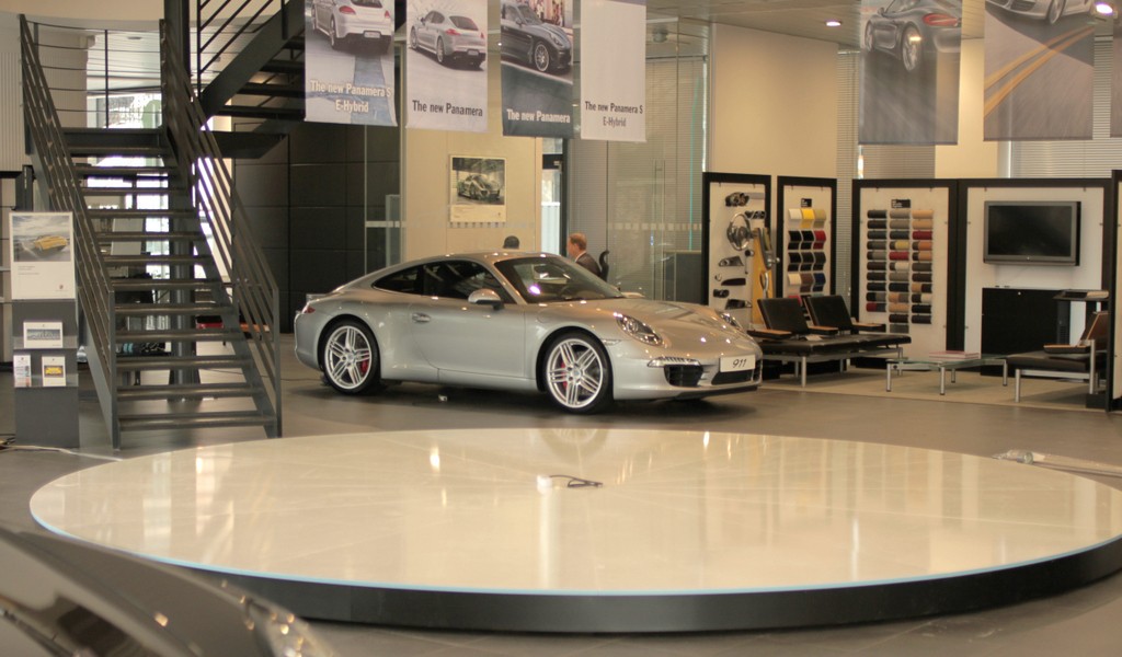 4. Keep it practical: Create a background and a floor that is practical for everyday use and stays beautiful in the “dirty environment” of a car dealership.
