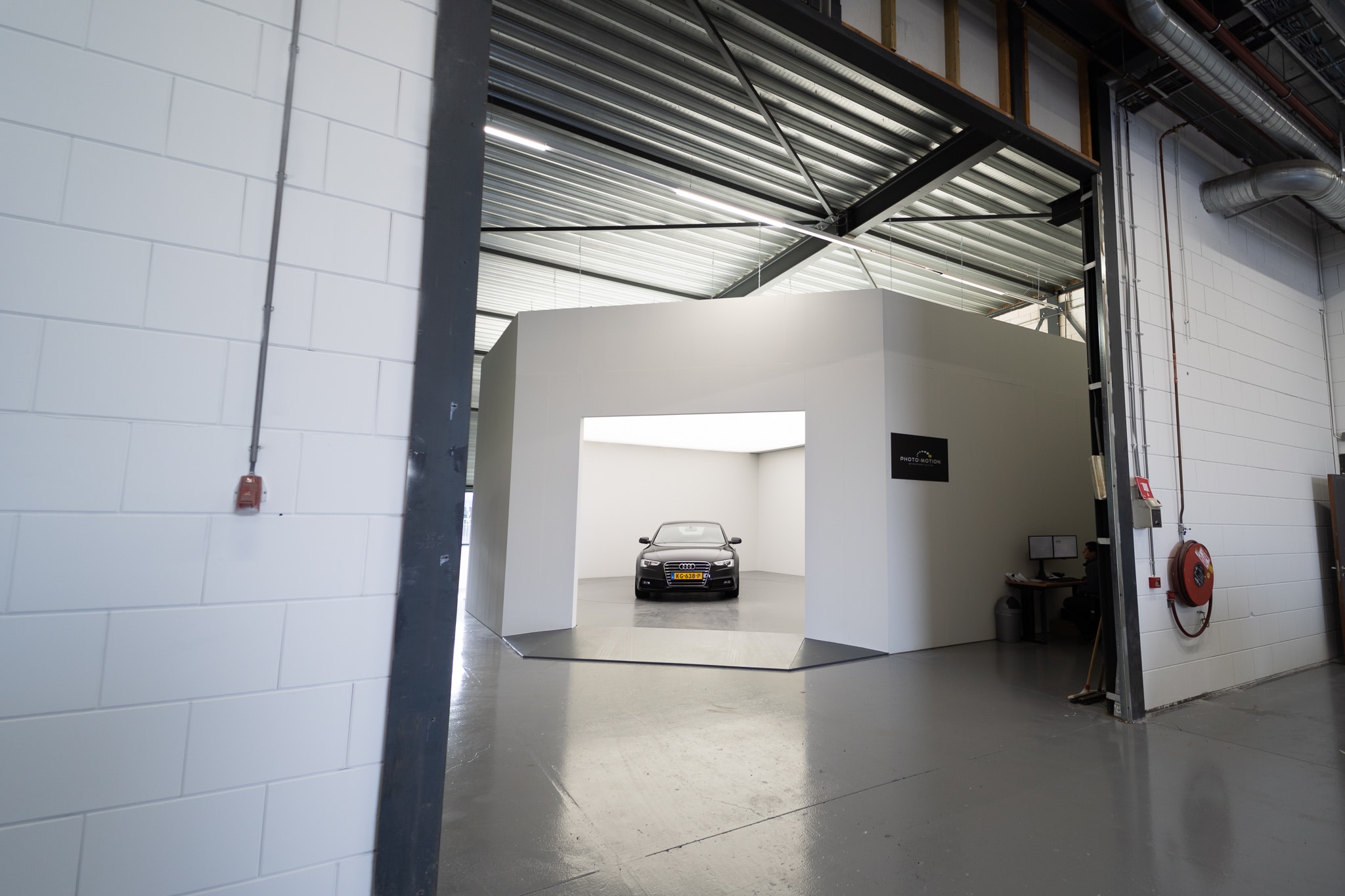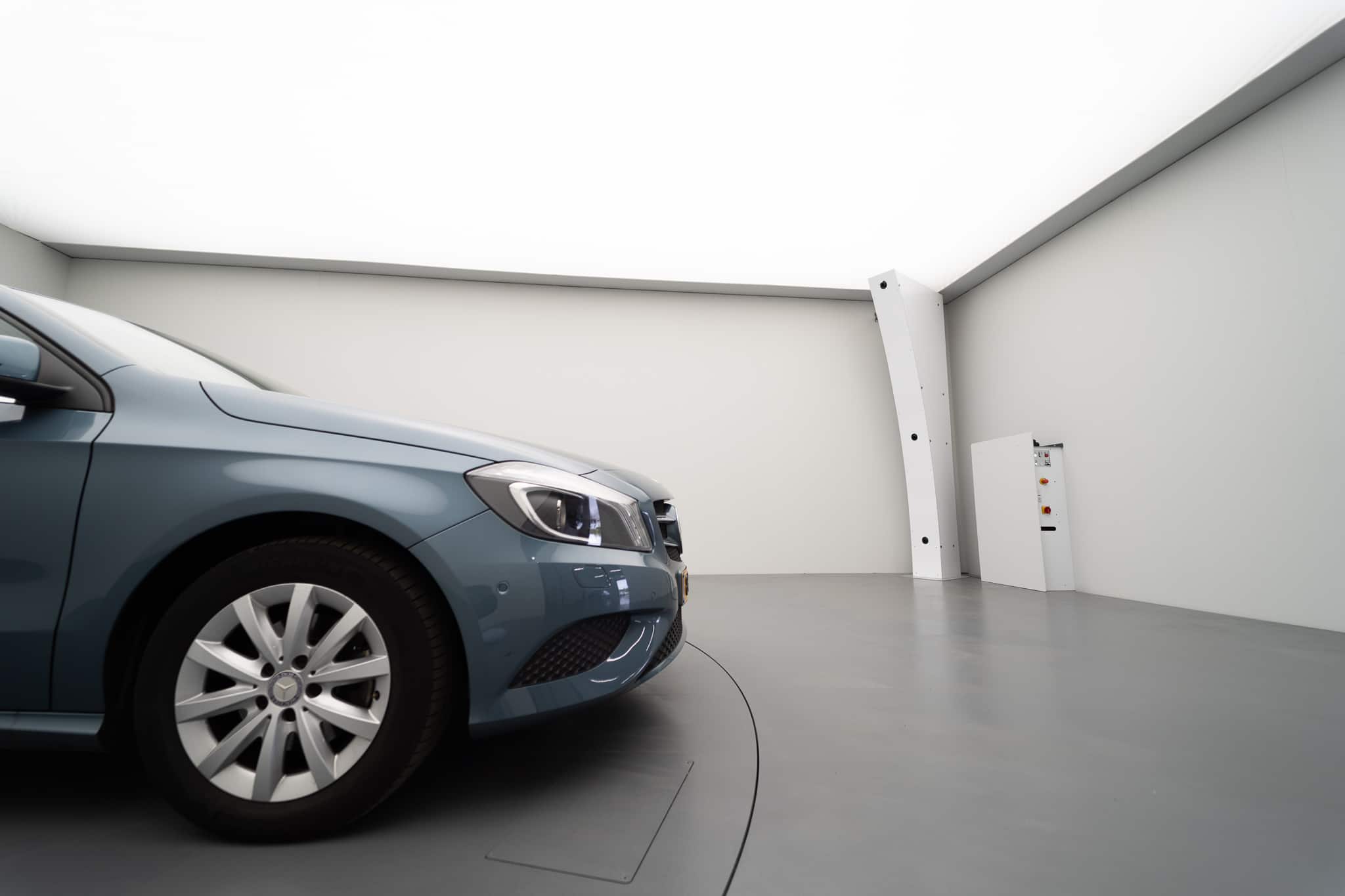 In order to make this possible, the ideal routing was thought out and drawn up, and investments were made in a washing line, an inspection line and an automated photo studio with a turntable. It was important that there were no bottlenecks; after all, the entire process is only as fast as the slowest link. So it was soon clear to Axero that the Photo-Motion process specialists were the right choice for the photo studio. Together with Axero, Photo-Motion designed the whole process and made it perfectly to measure. They took into account turning circles, entry and exit angles and maximising the number of parking spaces in the building.