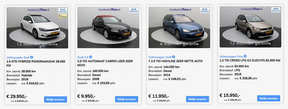 Every website visitor of Autobedrijf Ficus will get the impression that they are dealing with a professional company. On the stock page, where Ficus’ offer can be seen, all cars are presented in the same way. Each car is photographed from the same angle and is placed in the same space, which does not distract the potential buyer from the car.