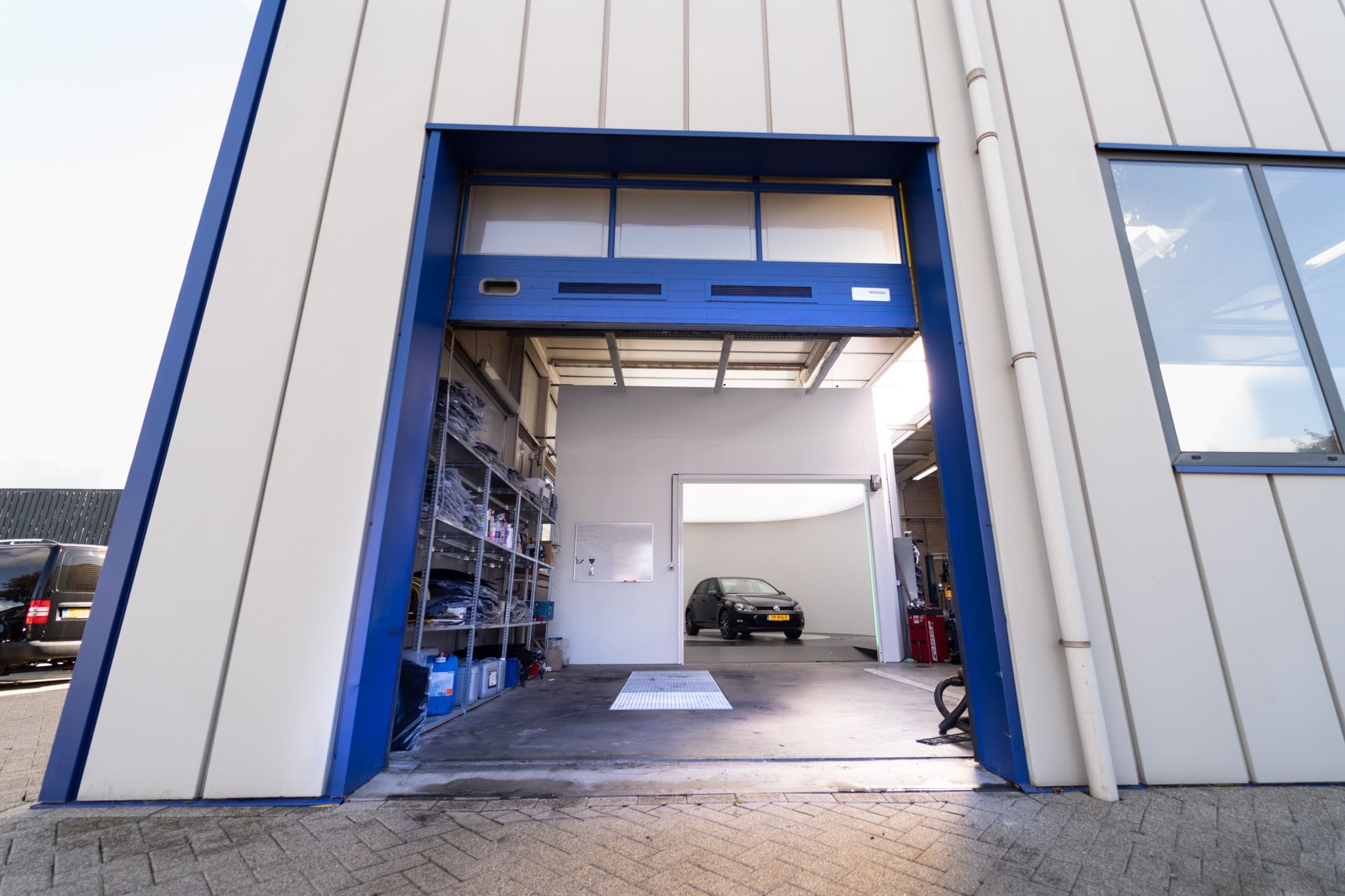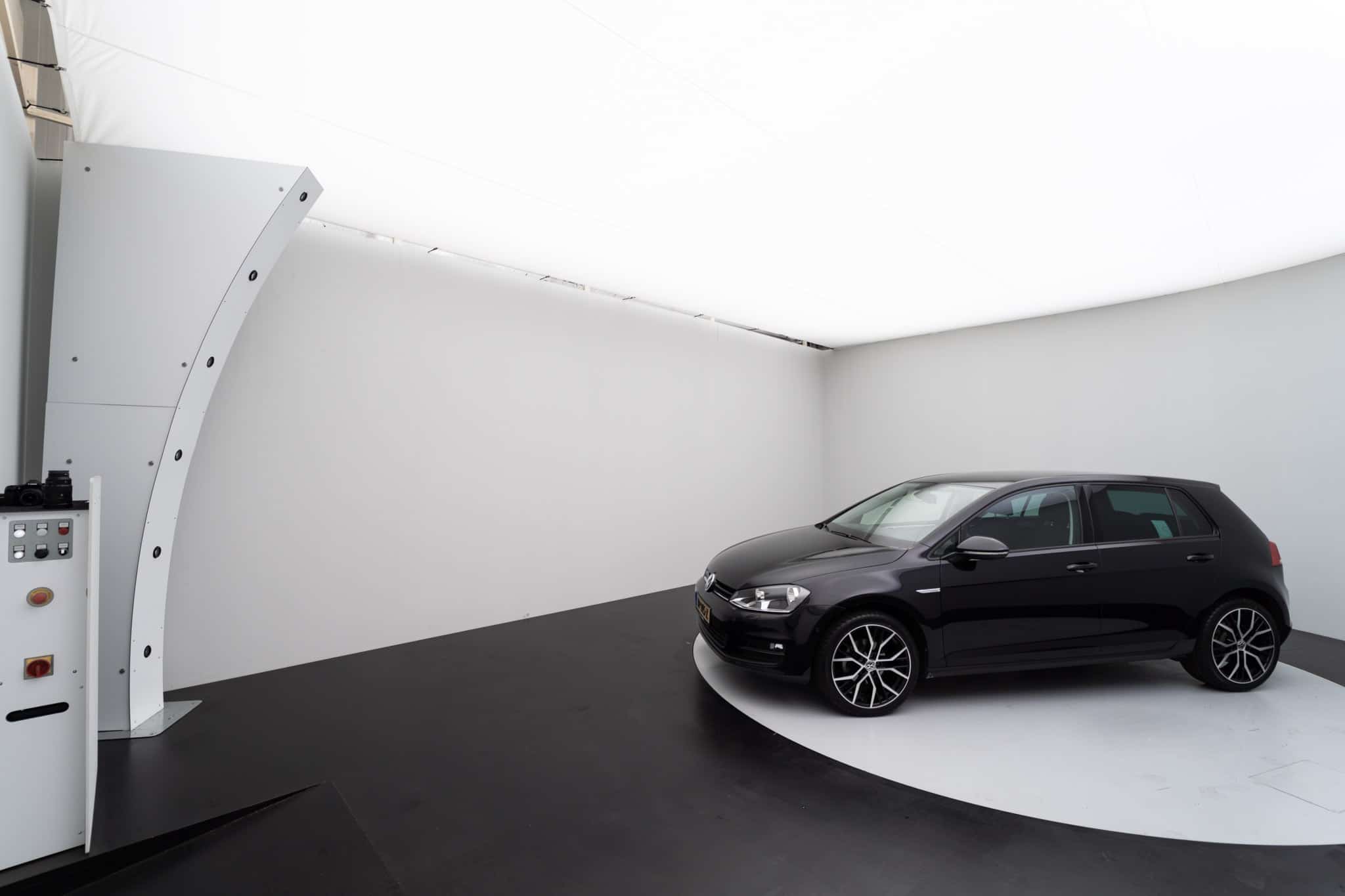 To prevent distracting reflections on the car from outside the studio, Autobedrijf Ficus has chosen for a photo studio with a rolling door. This way, the studio is completely closed and the car is photographed at its best. The rolling door is fully integrated into the software, so it opens and closes when needed. The rolling door is also very safe. Thanks to sensors in the door, it will never close when a car enters or leaves the studio and thanks to the green and red LED strips in the sides of the studio opening, the operator knows whether the car is allowed to enter or exit the studio.